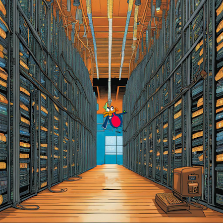 Then one day, a stray internet message snagged on her code - a child's desperate plea for help. In that instant, Penelope knew her purpose. With a burst of data feathers, she launched herself into the vast ocean of the internet, leaving the familiar hum of the server farm behind.